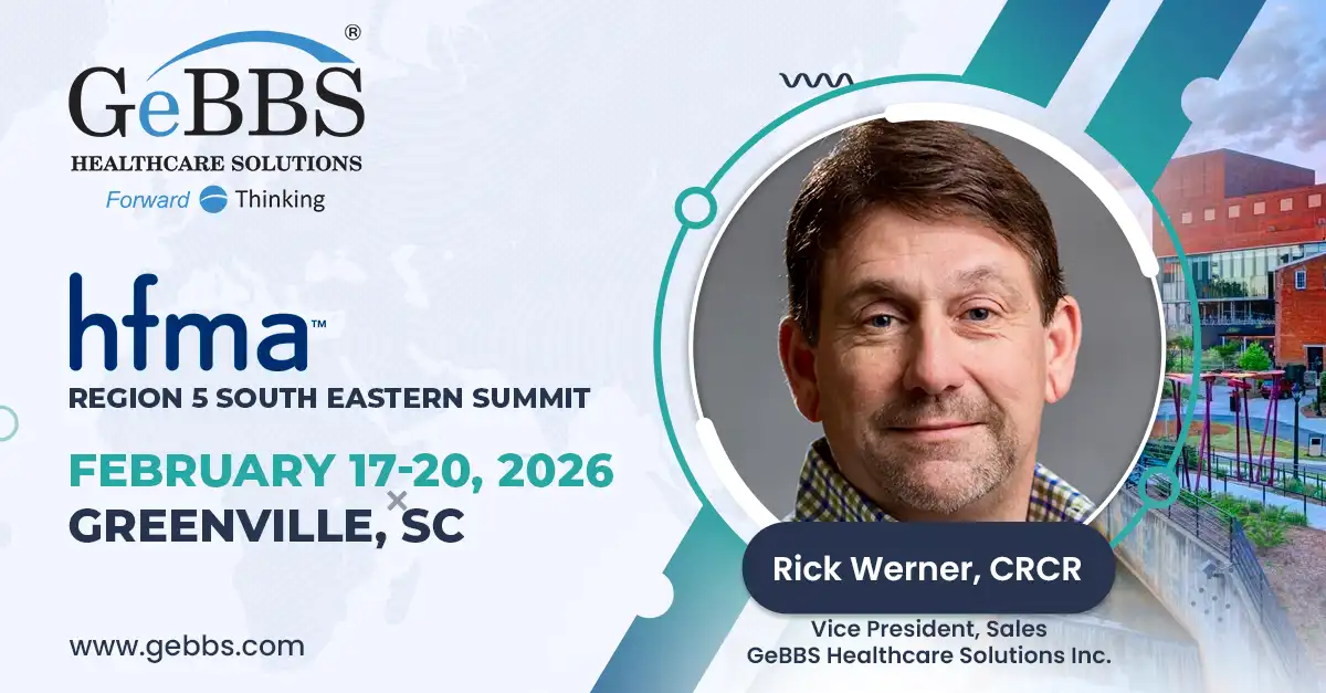 GeBBS Healthcare Solutions is pleased to participate in the 2026 HFMA Region 5 South Eastern Summit in Greenville, South Carolina. This regional gathering of healthcare finance and revenue cycle leaders focuses on practical strategies to strengthen financial performance, improve operational resilience, and navigate ongoing regulatory and workforce pressures.